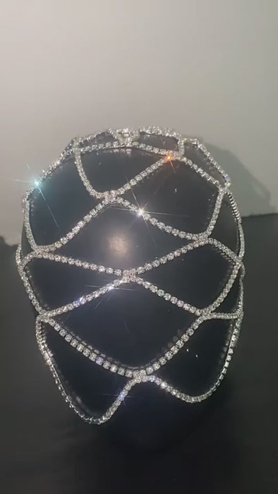 Elevate your festival look with our Hollow Rhinestone Head Chain, a radiant accessory available in silver, gold, or black finishes. Crafted from high-quality copper, this head chain boasts multi-layered rhinestone-encrusted chains delicately crossed over for a dazzling effect.
