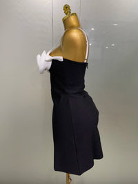 Step into the spotlight with the 3D Flower Bandage Dress, a playful twist on the classic little black dress. This figure-hugging mini dress features a sleek black bodycon fit that flatters your curves, while two large white 3D flowers on the bust add a fun and eye-catching contrast. The adjustable white spaghetti straps let you customize the fit for comfort, and the sheath silhouette flatters your curves. Made from a stretchy blend of polyester and spandex, it moves with you and zips up easily for a flawless finish, perfect to wear whether your on stage performing at a festival or dancing in the crowd!