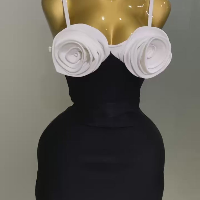 Treten Sie mit dem 3D Flower Bandage Dress ins Rampenlicht, einer verspielten Variante des klassischen kleinen Schwarzen. Dieses figurbetonte Minikleid besticht durch seinen eleganten, schwarzen Bodycon-Schnitt, der Ihre Kurven betont, während zwei große weiße 3D-Blumen auf der Brust einen verspielten und auffälligen Kontrast bilden. Die verstellbaren weißen Spaghettiträger ermöglichen eine individuelle Passform für mehr Komfort, und die Etui-Silhouette betont Ihre Kurven. Es besteht aus einer dehnbaren Mischung aus Polyester und Elasthan, passt sich Ihren Bewegungen an und lässt sich für ein makelloses Finish leicht mit dem Reißverschluss schließen – perfekt für einen Auftritt auf der Bühne oder zum Tanzen im Publikum!