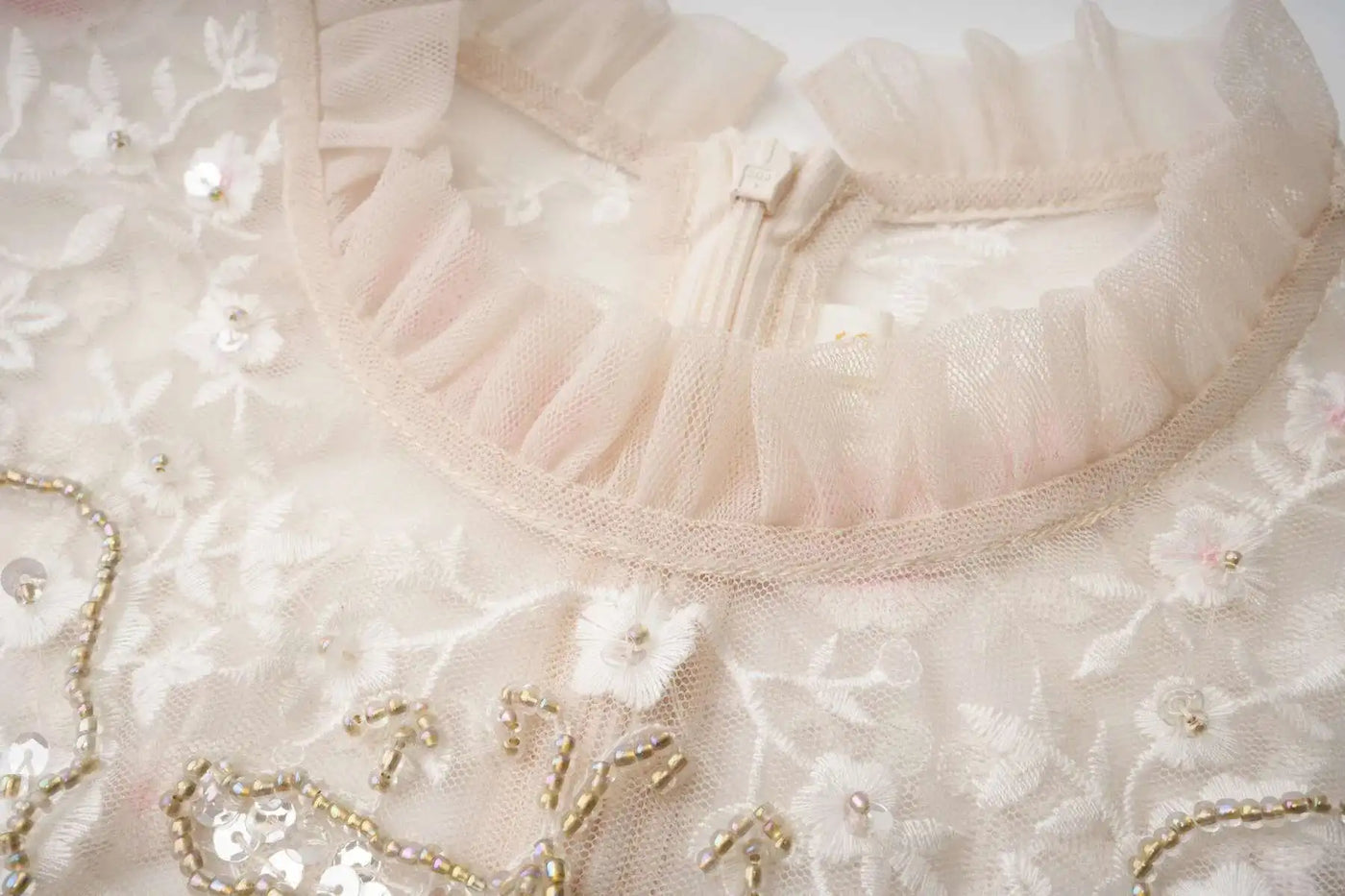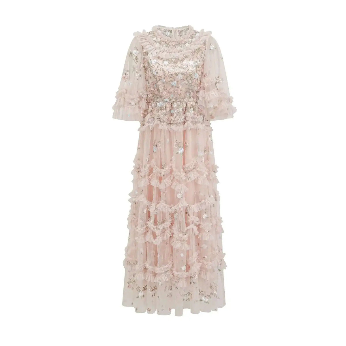 In soft pastel shades covered with delicate floral embroidery, it’s perfect for dancing in the sun, sipping at garden parties, or making an entrance at any celebration. Finished with a sleek zipper closure for an easy, flattering fit — this dress is all elegance, all fun, and all you. 🌼✨