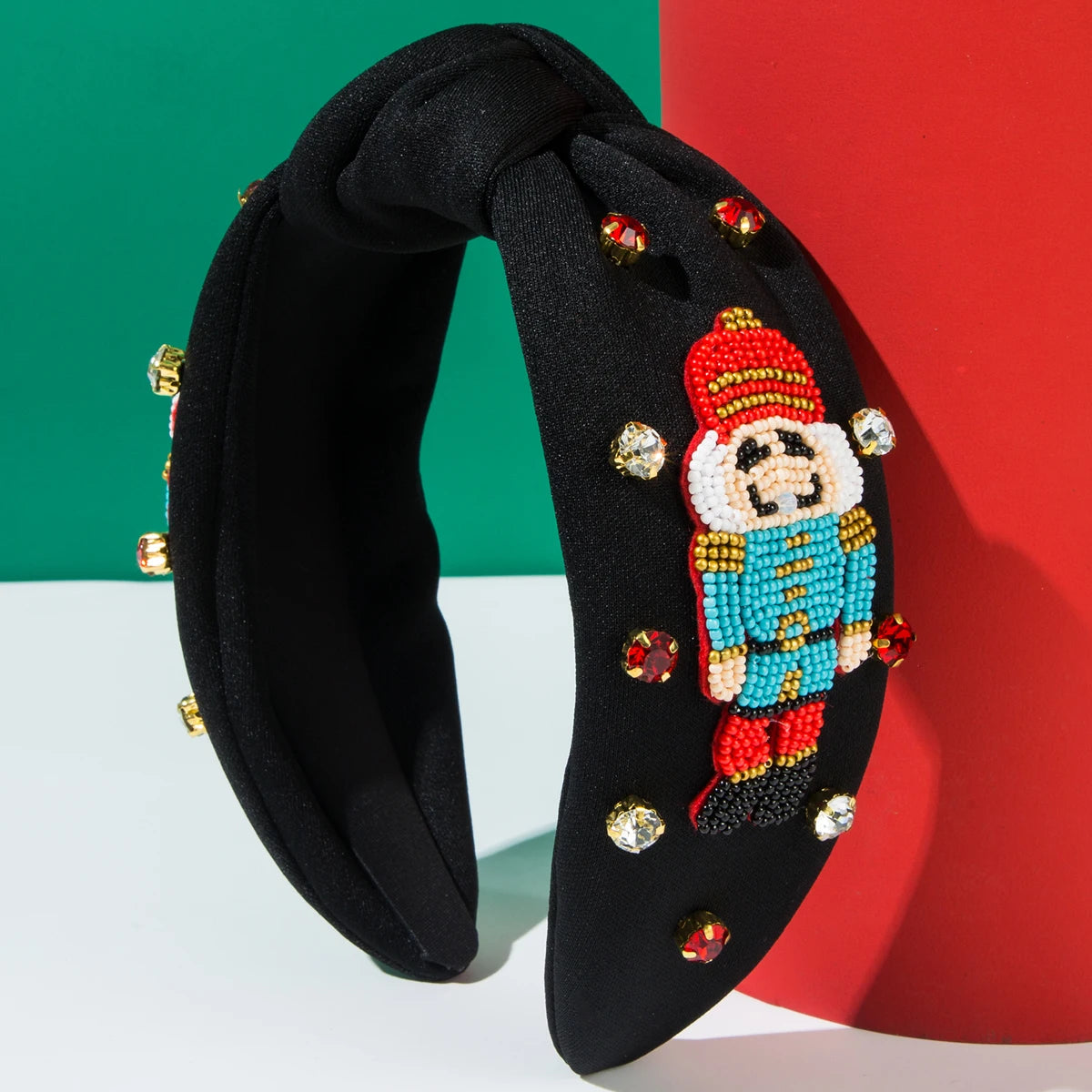 Add a festive twist to your style with our Christmas Nutcracker Beaded Hairband, available in classic black or merry red! Each hairband showcases a charming, hand-sewn nutcracker character on each side, crafted from delicate rice beads for a unique, artisanal touch. Sparkly gem accents bring a burst of holiday magic and the knotted detail at the centre adds an extra unique and on trend twist. Perfect for Christmas parties or as a standout stocking stuffer, this high-quality accessory will keep you looking jolly and stylish all season long!