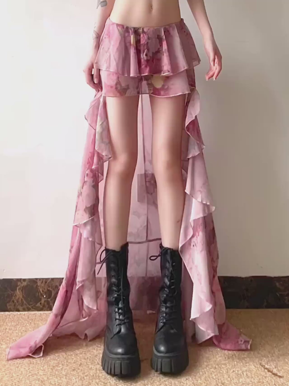 Get ready to turn heads in these Floral Asymmetrical Shorts! Available in UK size 8, size 10, and size 12/14, these low-waist shorts are perfect for any summer occasion. The unique asymmetrical ruffled design adds a touch of elegance to this fun and playful piece. Made from a blend of polyester and spandex, these shorts provide both comfort and style. The beautiful pink floral pattern makes these shorts the perfect addition to any bohemian or hippie-inspired look. Whether you're hitting up the beach or heading to a summer festival, these Floral Asymmetrical Shorts are sure to make you stand out in the best way possible.