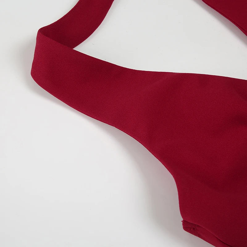 With a deep V neckline, halter neck style, and a bold front zipper, this top brings all the drama. The lace-up sides add a flirty edge, while the stretchy polyester-spandex blend hugs your figure just right.