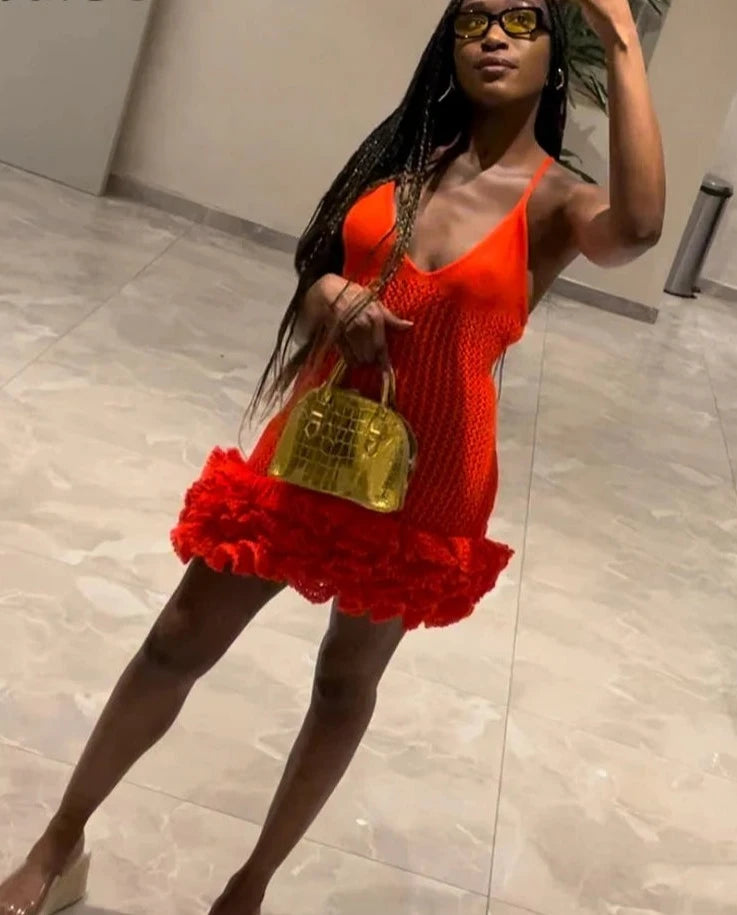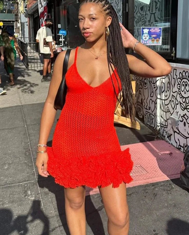 Spaghetti straps add a delicate touch, while the pullover style ensures ease and comfort. Perfect for channelling your inner bohemian spirit, the dress boasts a hippy, boho vibe ideal for festivals and summer outings. Crafted from soft, breathable polyester and spandex with a charming hollowed-out design, this dress is your go-to for carefree, stylish fun.