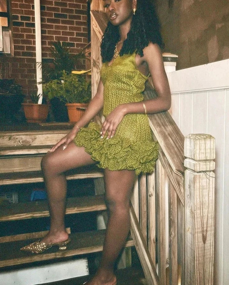 Get ready to turn heads with the Knitted Ruffle Bodycon Dress! This flirty number, available in sizes S-L, comes in a vibrant palette of army green, blue, red, yellow, black, brown and pink. Featuring a deep V-neck and pleated details, this dress accentuates your figure with an elastic waist and above-knee length.