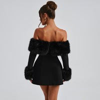 With its sleek silhouette and eye-catching faux fur trim, our Faux Fur Trim A-Line Dress is the perfect choice for any festive occasion. Made with a mix of polyester and acrylic, this mini dress comes in a range of sizes to fit any body type. The off-the-shoulder design and zipper closure add a touch of elegance, while the faux fur trim at the top of the dress and on the sleeves adds a playful yet sophisticated touch. Whether you're celebrating Christmas or ringing in the New Year, this dress is sure to make a statement and keep you feeling comfortable all night long.