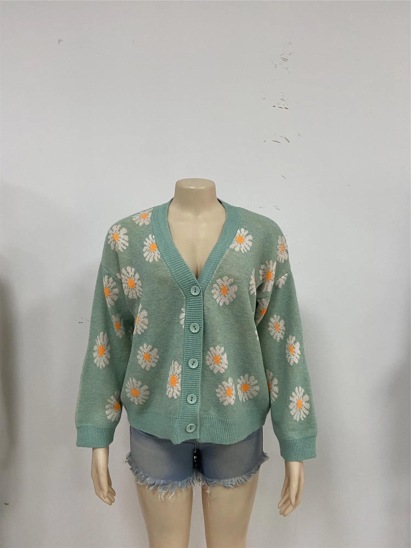 Material:Cotton, Polyester Decoration: Spring Daisy Flowers Features: V-neck; easy fasten buttons; full sleeves; soft material; loose fitting, slight stretch