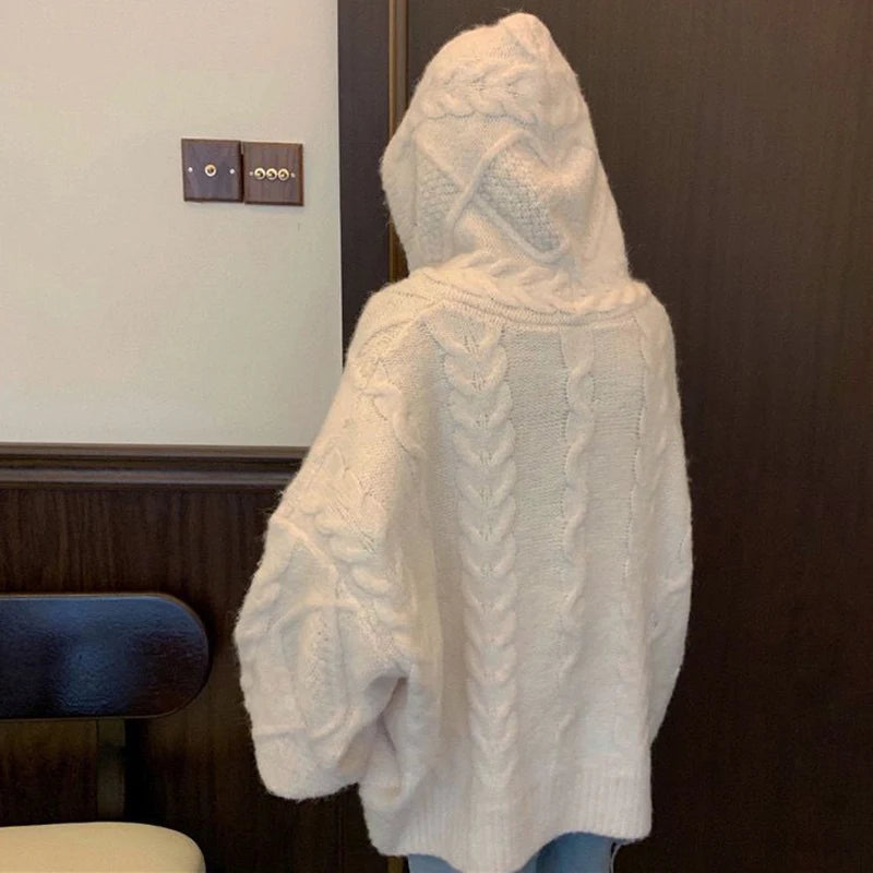 Stay warm and cosy this winter with our fabulous oversized knitted cardigan. You can choose from beige or auburn shades for your ideal winter warmer. Featuring puff sleeves and a loose-fitting, cable design and unusual double zipping, this knit is perfect for all body types.
