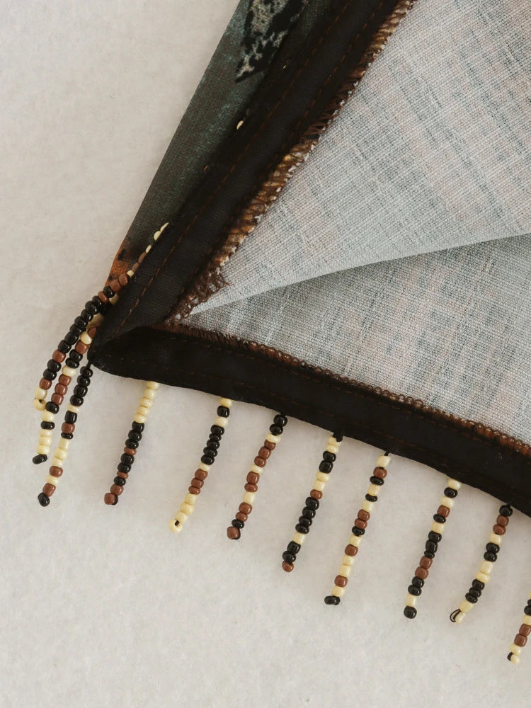Combining a tribal geometric pattern with western style beaded tassels, this stunning skirt is a light weight polyester material so is perfect to wear in hotter weather. It features a tie design at the side of the skirt to accentuate your waist, giving a flattering figure to any body shape.