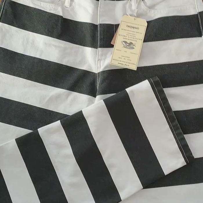 A great addition to our Festiguy collection; add a touch of style and vibrancy to your Festival wardrobe with these Monochrome Striped Canvas Trousers.