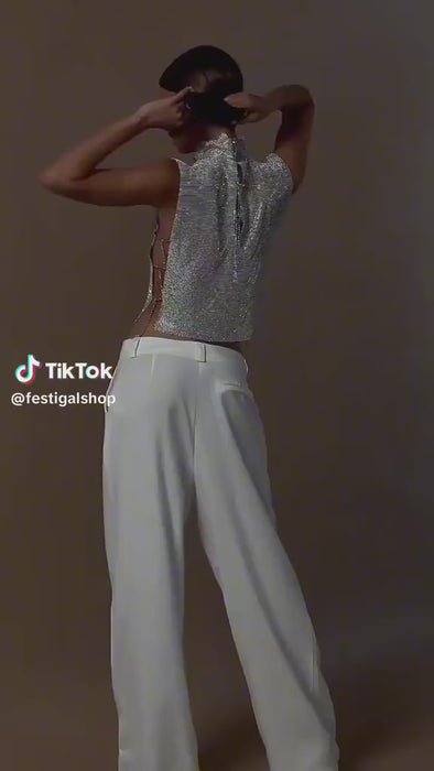 The Rhinestone Chainmail Top is an eye-catching piece that draws inspiration from the glamorous 2000s era of celebrities like Paris Hilton, Naomi Campbell and Kate Moss. Made from a mix of metal and polyester, this top creates a unique and shining effect that will wow any onlooker. It comes in a range of colours to choose from, and features cut-out sides and a sleeveless turtleneck design with an alluring backless design. It's the perfect top for a festival, party or night out, making you the centre of the attention.