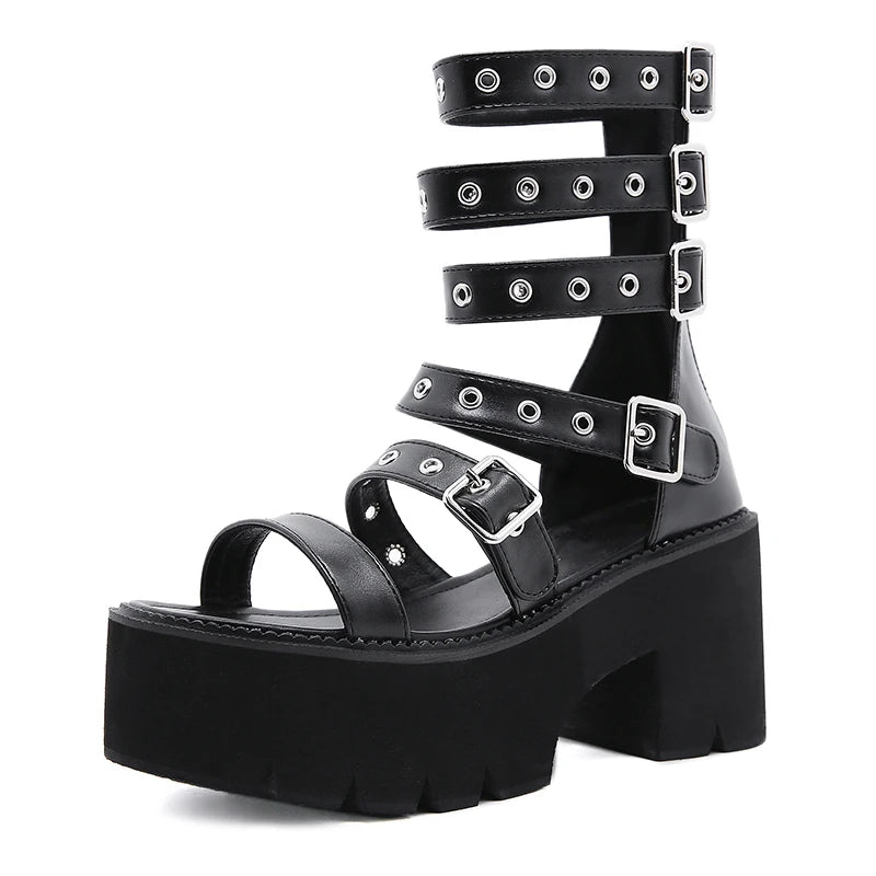 Step into the spotlight with Punk Gladiator Platform Sandals.