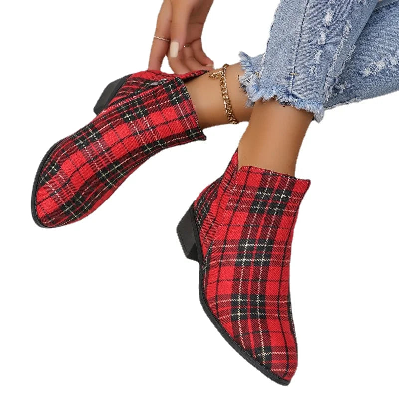 Red Plaid Ankle Boots