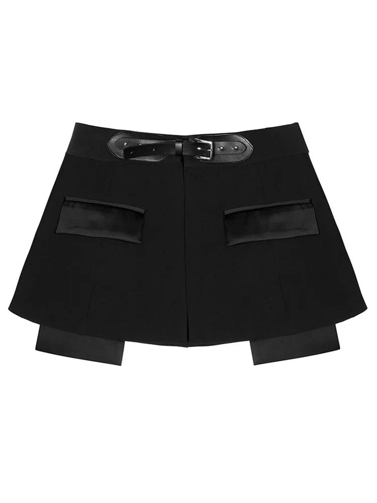 Designed in a chic A-line shape, this skirt flatters every figure. The high-waisted cut is accentuated with a stylish belt, allowing you to cinch your waist for a tailored fit. Adorned with silver rhinestones above each side pocket, it brings a dash of glamour to your outfit, catching the light with every move.