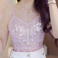 The Lace Butterfly Top is a stylish camisole top designed for festival lovers and Y2K fashion enthusiasts. Available in white and pink, this top comes in three subtly distinct styles, each featuring an embroidered butterfly on the front embellished with beading and rhinestones. Crafted from a comfortable blend of cotton and polyester, it offers a stretchy one size fit with a ruched back that enhances shape and comfort.