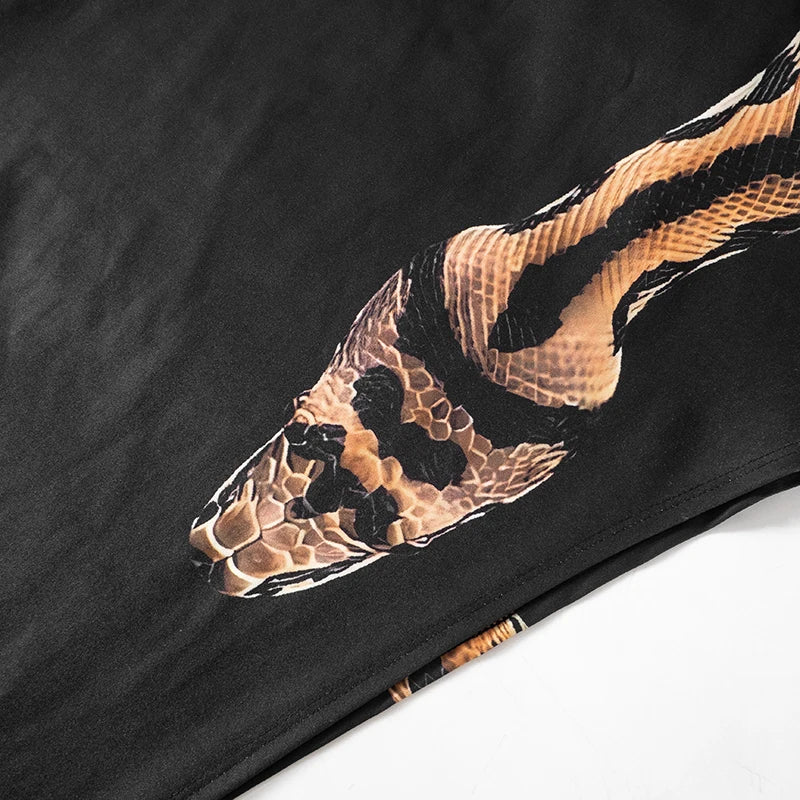 Unleash your bold side with the Snake Cut Out Maxi Dress, a black, ankle-length masterpiece designed to captivate. Crafted from stretchy polyester and spandex, this figure-hugging dress moulds to your silhouette, enhancing every curve. Its sleeveless design and daring hollow-out side reveal just enough skin, while the striking snake detail slithers provocatively around the cut-out, adding a unique and seductive edge. Perfect for those who dare to stand out, this dress combines sultry style with comfort for a look that's unforgettable and fiercely confident.
