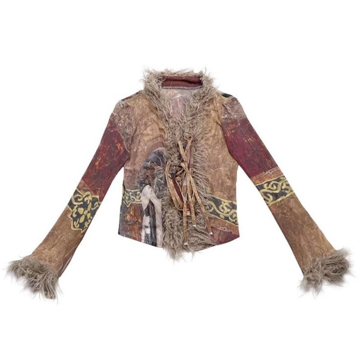 Y2K Afghan Bohemian Vibes: Our Afghan Shaggy Fur Trim Blouse captures the essence of the Y2K aesthetic with its Afghan-inspired design and Bohemian flair. This shirt is all about embracing individuality and channelling the carefree spirit of music festivals and creative self-expression.