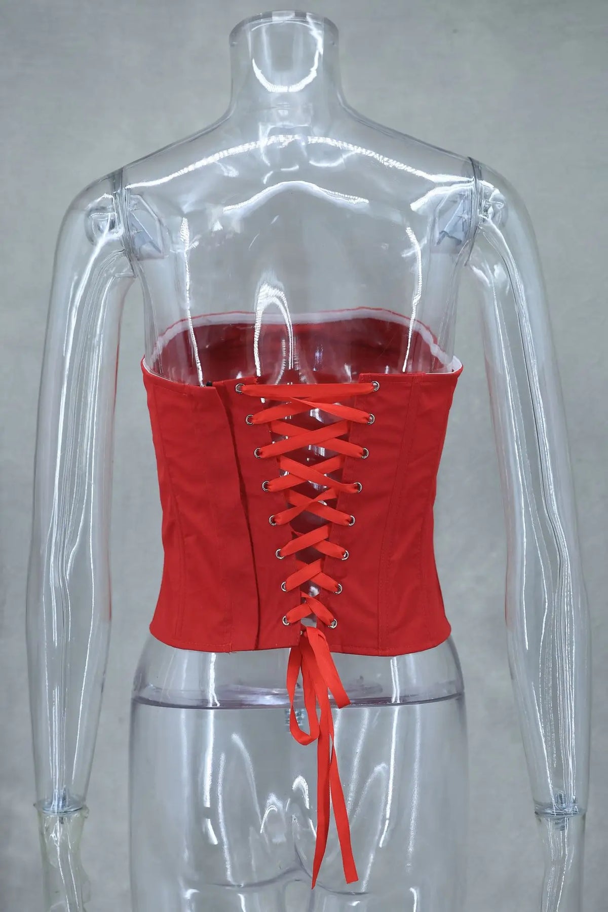 Red Corset & Mini Ruffle Skirt Two Piece Set