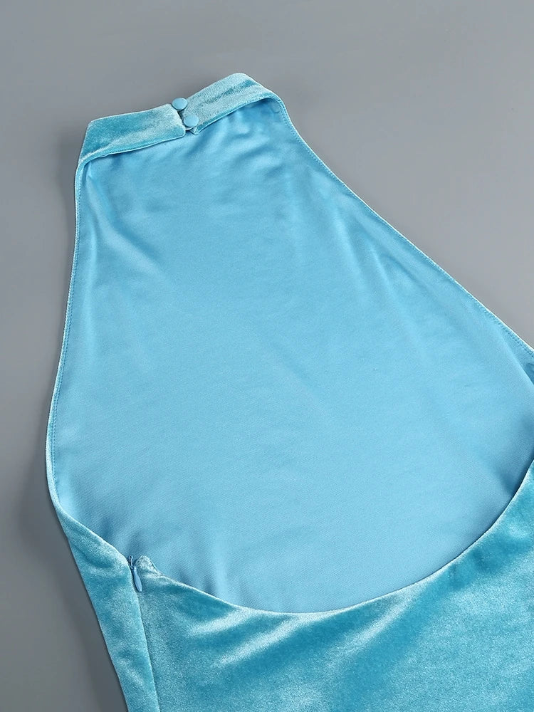 The flattering halterneck style buttons neatly at the neck, while a discreet side zipper keeps the fit secure and comfortable. Made from velour-soft polyester, it feels smooth and lightweight against the skin, perfect for long, carefree days.